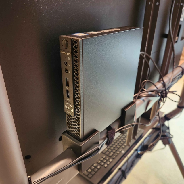 | When it came to selecting which computer to use, I needed one that was small and yet powerful enough to run the game. Like my previous project, that lead me to get myself another Dell Optiplex. You can get a used Dell Optiplex Micro for dirt cheap prices nowadays. Here I 3d printed a simple mount for it to sit behind the TV. |